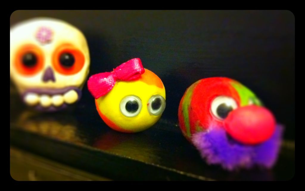 Here’s a photo of some new characters, Mrs. Fruits and Pedro the skull.